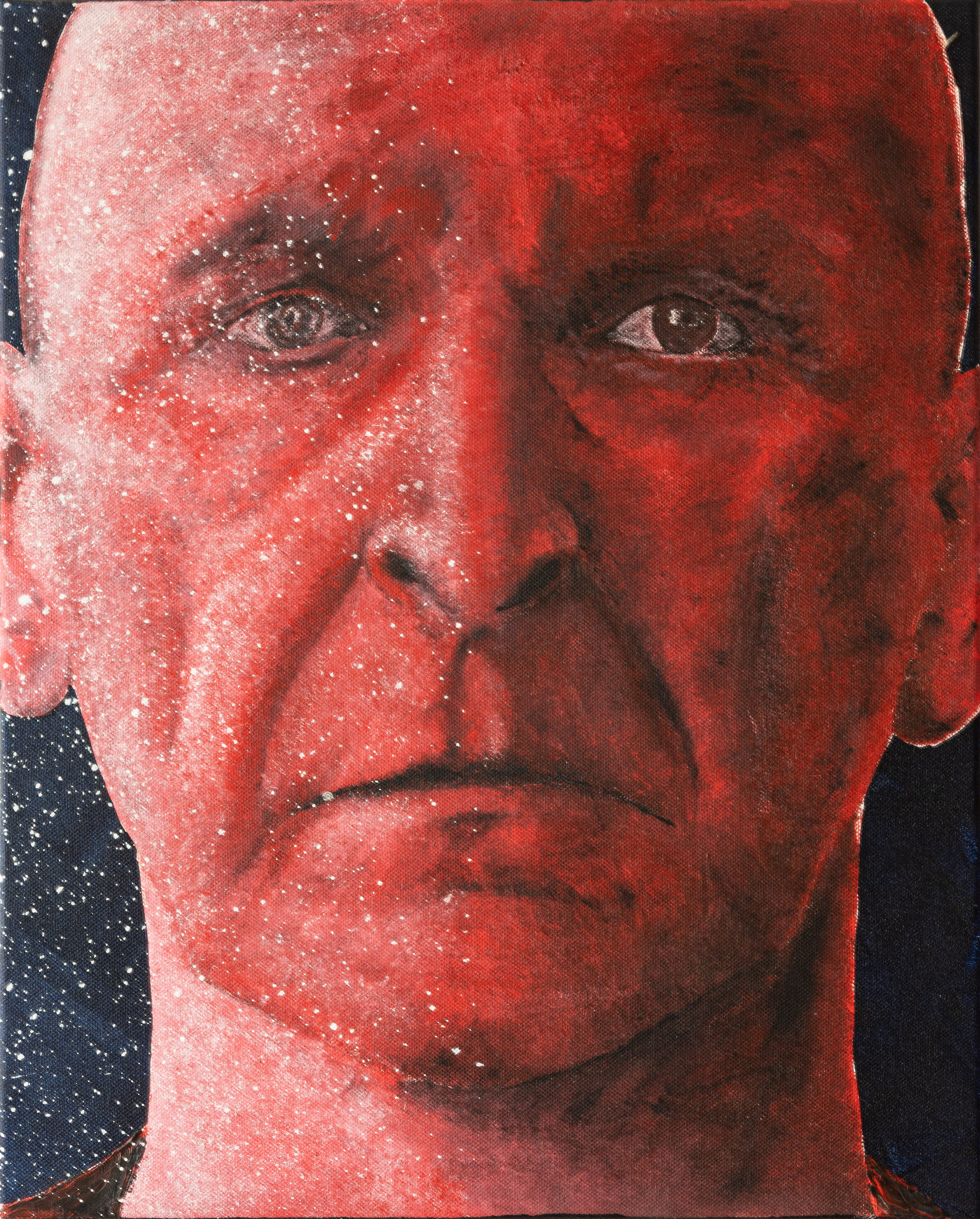 Playing Faust Playing FaustOil paint on canvasSize: 50.5 x 40.5 x 2 cmSelf-portrait “Two souls, alas, are housed within my breast, and each will wrestle for the mastery there.”Faust by Johann Wolfgang von Goethe Enquire about this work. Like a bird on the wireLike a drunk in a midnight choirI have tried in my way to be freeLeonard Cohen, Bird on a Wire Frank Aged 59½ (after Kai aged 4) Shadowlands Three Brushes (Small) Other worksTo see more, please click on one of the images below. The WoodworkerOil paint on linen (Framed) Well OiledOil paint on canvas (Sold) The Black DogOil paint on canvas